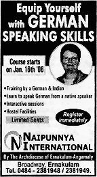 Zeitungsinserat in der Malabar - Zeitung "DEEPIKA" vom 28.12.2005
